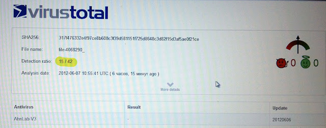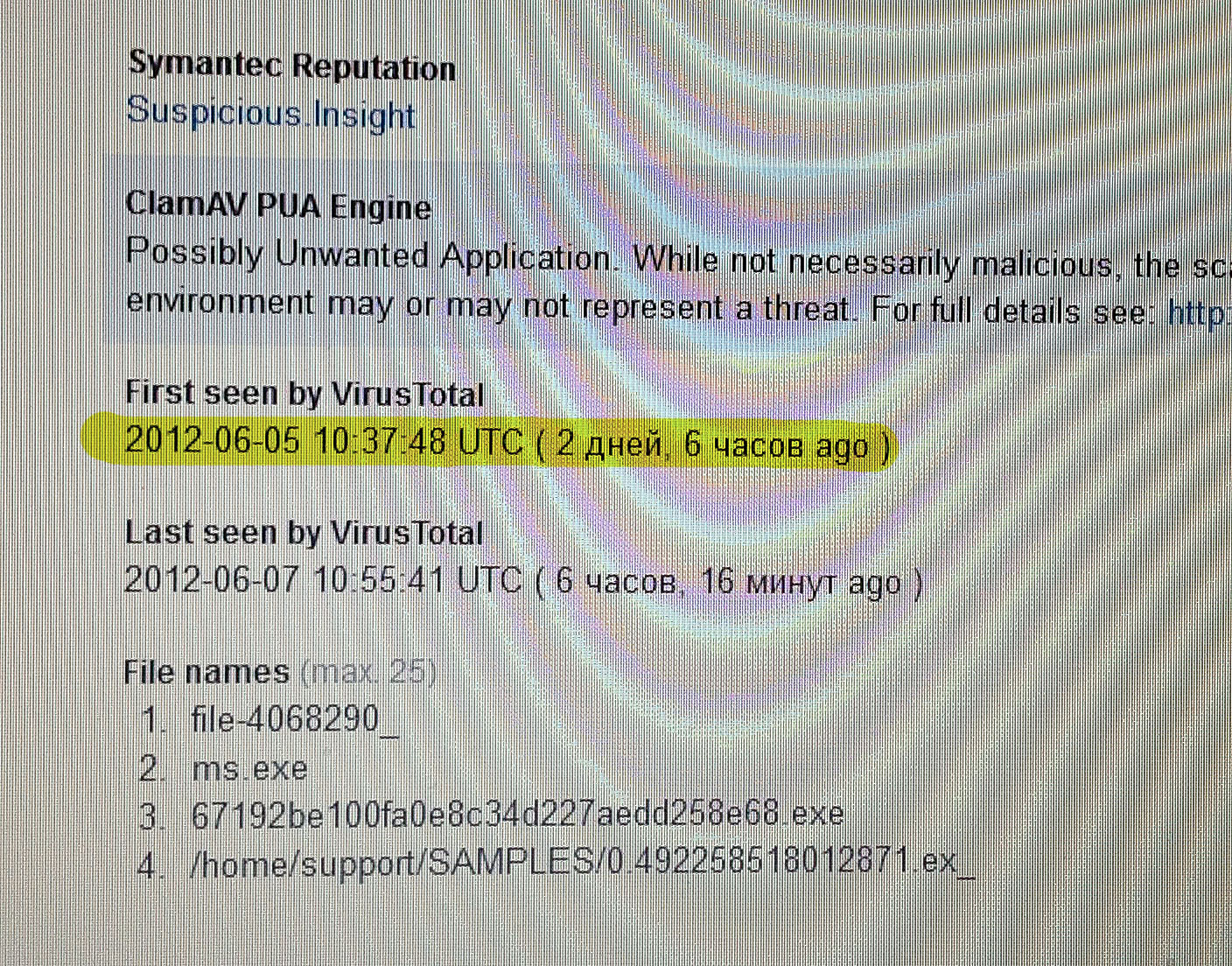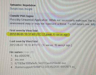 Из последнего скриншота видно, что вирус постоянно эволюционирует и исследуемый ПК был заражён последней модификацией вируса, которая на момент заражения еще не была известна VirusTotal.