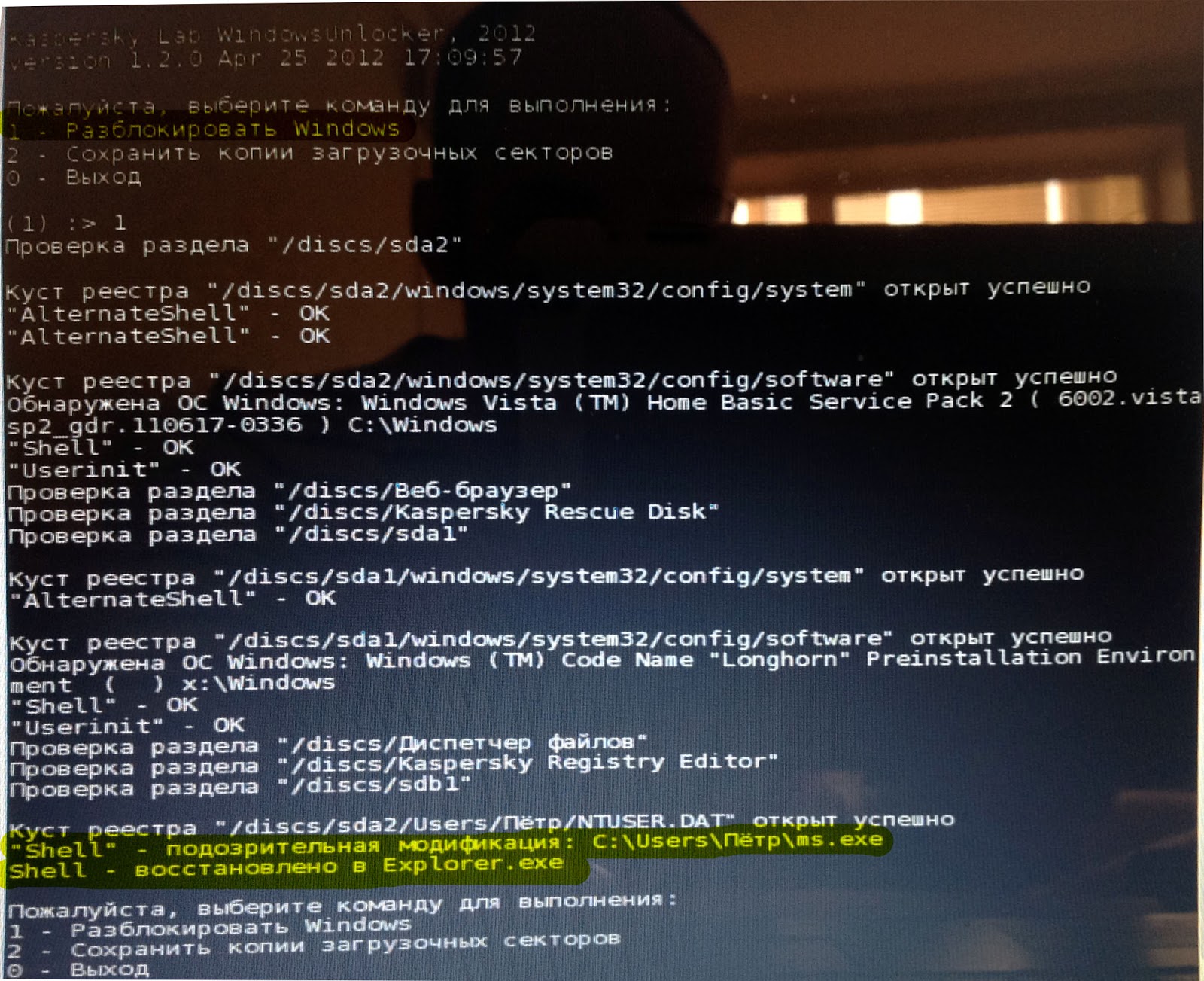 4. После проверки, запускаем WindowsUnlocker из командной строки.