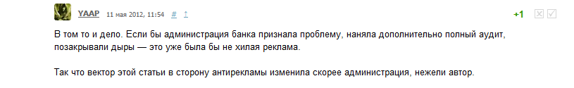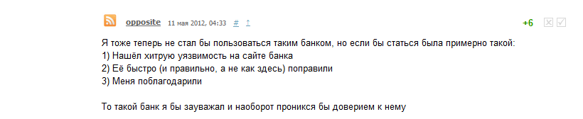 В итоге всего этого системный администратор уволился с формулировкой "я хотел как лучше, а вам ничего не надо". Да и комментарии к статье на хабре сложились не в пользу банка: