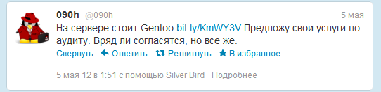 10 мая на Хабре появилась интересная статья про пентест Кубанского Универсально Банка (www.kubunibank.ru). Автор - пентестер с ником 090h. Статья быстро набрала популярность и к вечеру стала самой популярной статьей за день на Хабре.