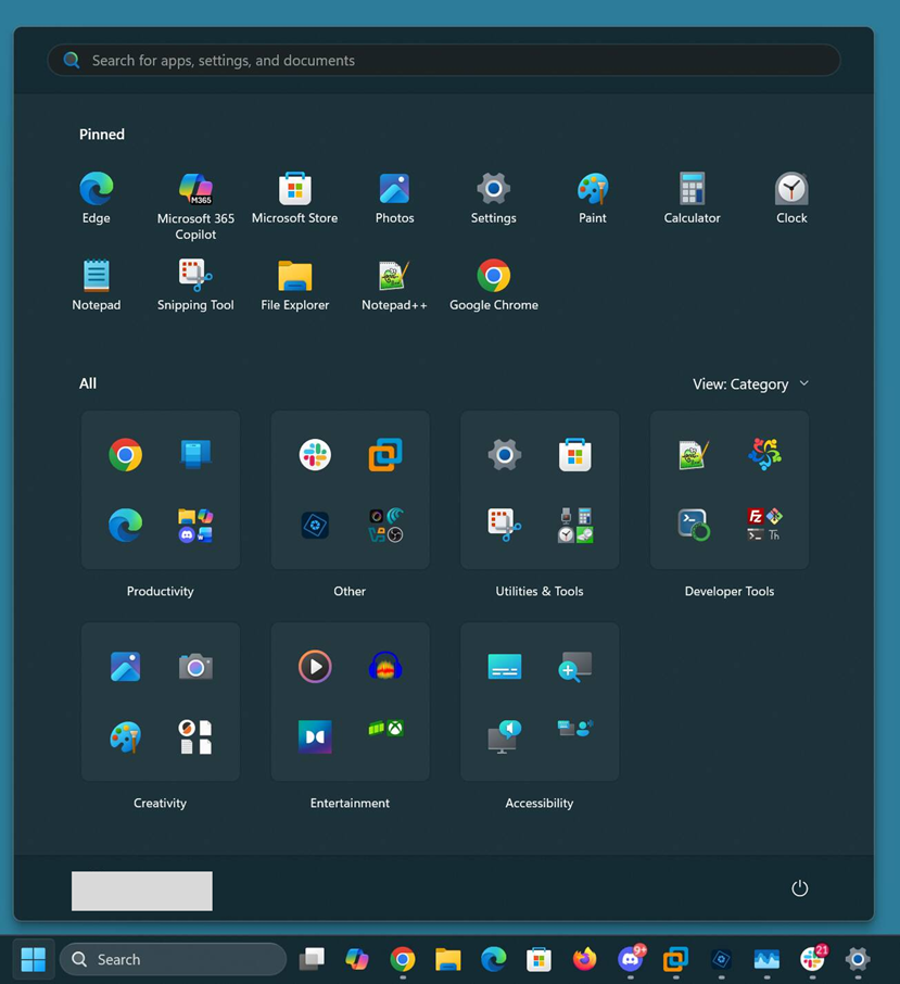 В классическом «Пуске» Windows 11 внизу живёт раздел «Рекомендуемое» с тем, что система считает нужным подсунуть вам под руку — от последнего документа до внезапного совета. Полный список программ там прячется за кнопкой «Все», и каждый раз приходилось делать лишнее движение. В новом варианте «Пуска» рекомендации можно отключить вовсе, а список приложений будет всегда под закреплёнными плитками. Хотите — сеткой по алфавиту, хотите — сплошным алфавитным списком, хотите — группами по категориям. Самый ёмкий формат — сетка: влезает больше, прокрутка короче, глаза благодарны.