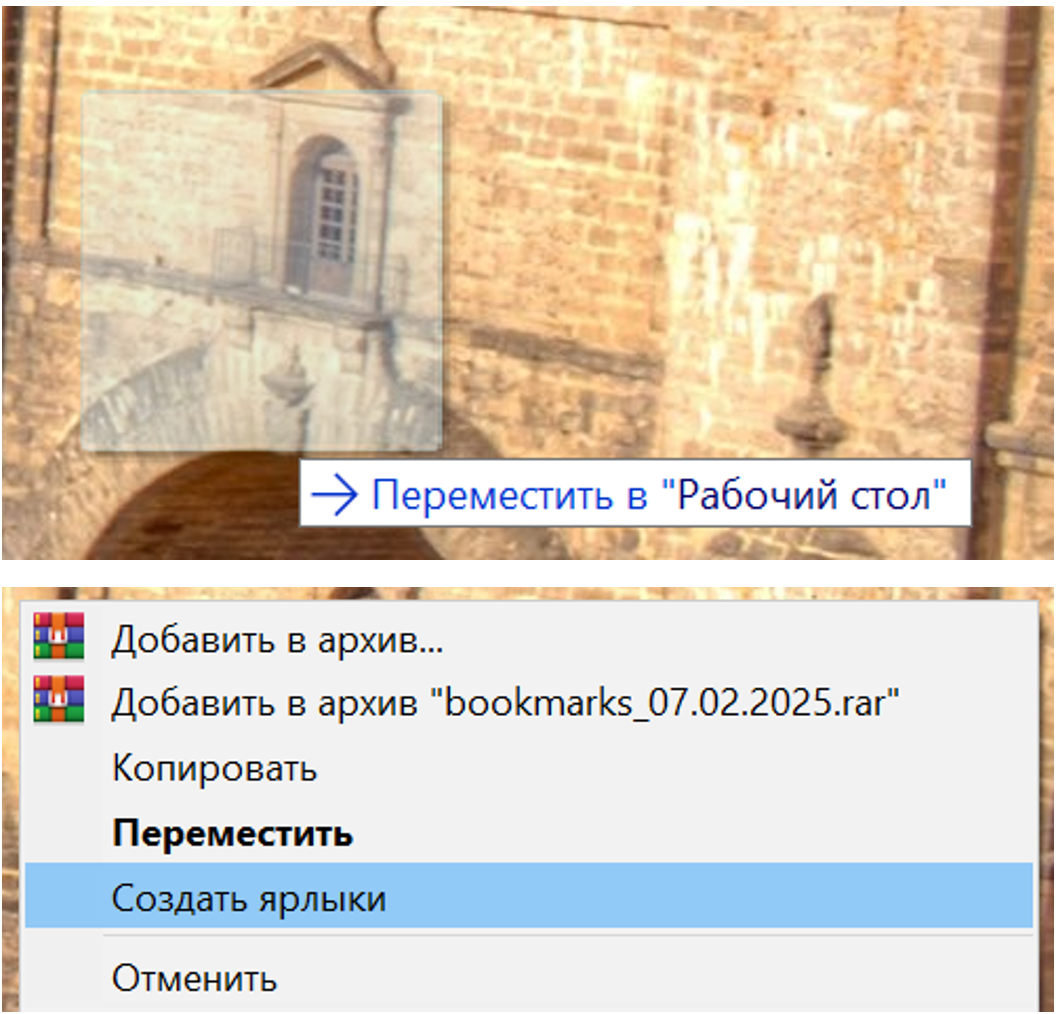 Совет: Если зажать клавишу Alt при перетаскивании левой кнопкой мыши, Windows автоматически создаст ярлык без дополнительного меню.
