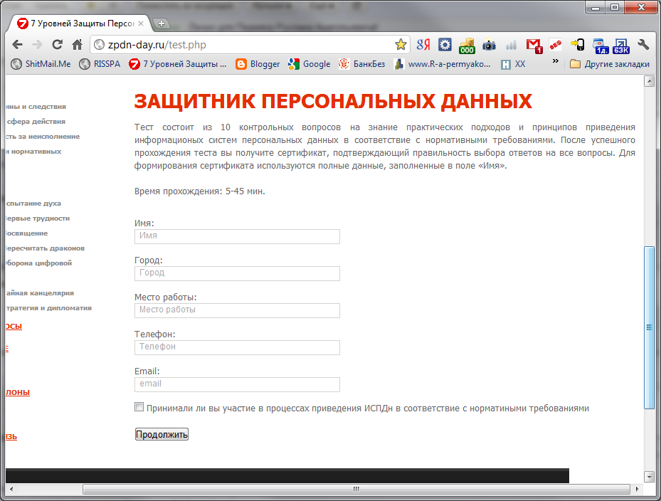 Во-вторых, если уж Вы написали тест на проверку качества знаний по нормативной документации о защите ПД, то черт возьми, оформите обработку ПД как надо. Ну да об этом Лукатский писал еще в ноябре 2010…
