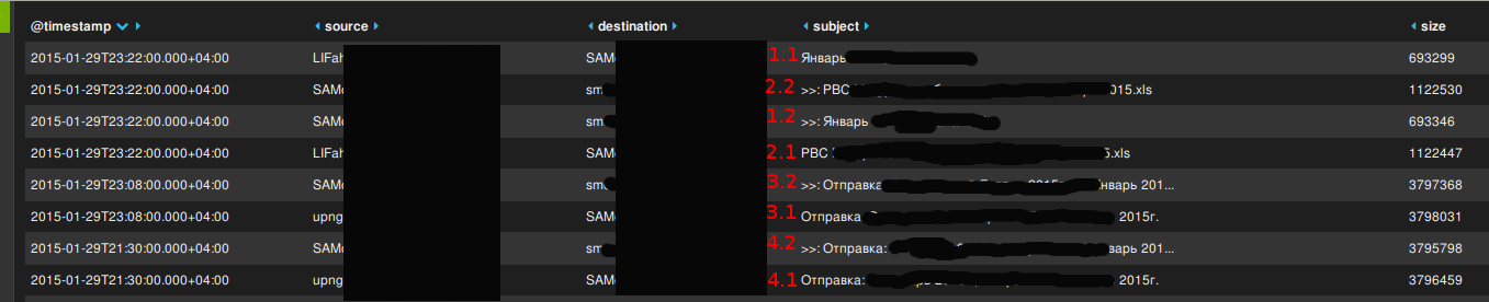 Давайте скорее займемся самым интересным – анализом. Рассмотрим не очень сложный сценарий, который не просто выполнить сортировками почтовых журналов – будем искать сотрудников, пересылающих свою почту на внешний почтовый ящик.
