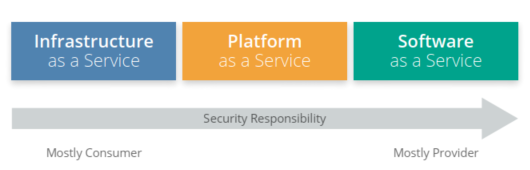- SaaS – на провайдере лежит максимум ответственности за безопасность, поскольку при такой модели он предоставляет клиенту софт и тот должен заботится, пожалуй, только о ролях и доступе, тогда как защиту периметра, логирование, аудит, защиту приложения обеспечивает провайдер