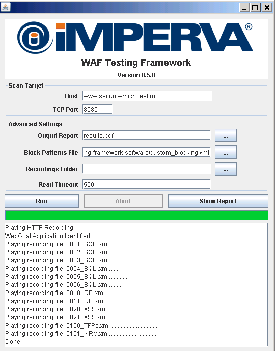 Для помощи нам в этом нелегком деле компания Imperva выпустила общедоступный инструмент WAF Testing Framework.