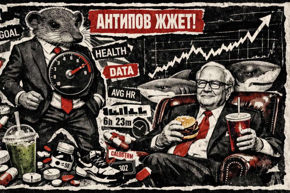 Пять утра. Кроссовки. Смузи. Восемь капсул коллагена. Трекер сна. Биологически это не подвиг, это ускоренный износ. Природе насрать на вашу дисциплину, она считает только расход топлива и выдаёт призы исключительно за медленность. И в финале призёры одни и те же. Акула, черепаха, моллюск. И Баффетт в кресле, с бургером.