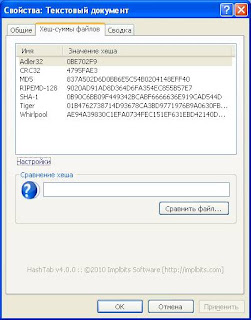 Чем удобнее рассчитывать хеш?Сейчас существует большое количество подобных утилит как платных, так и свободных для использования. Мне лично понравилась HashTab. Во-первых, утилита при установке встраивается в виде вкладки в свойства файлов, во-вторых, позволяет выбирать большое количество алгоритмов хеширования, а в третьих является бесплатной для частного некоммерческого использования.
