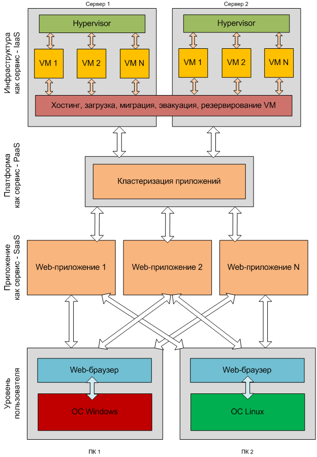 Уровень платформы (PaaS) для кластеризации и распределения нагрузок приложений по виртуальным машинам, используя уровень инфраструктуры. Данный уровень является полностью логическим и сосредотачивается на определенных серверах и/или виртуальных машинах.