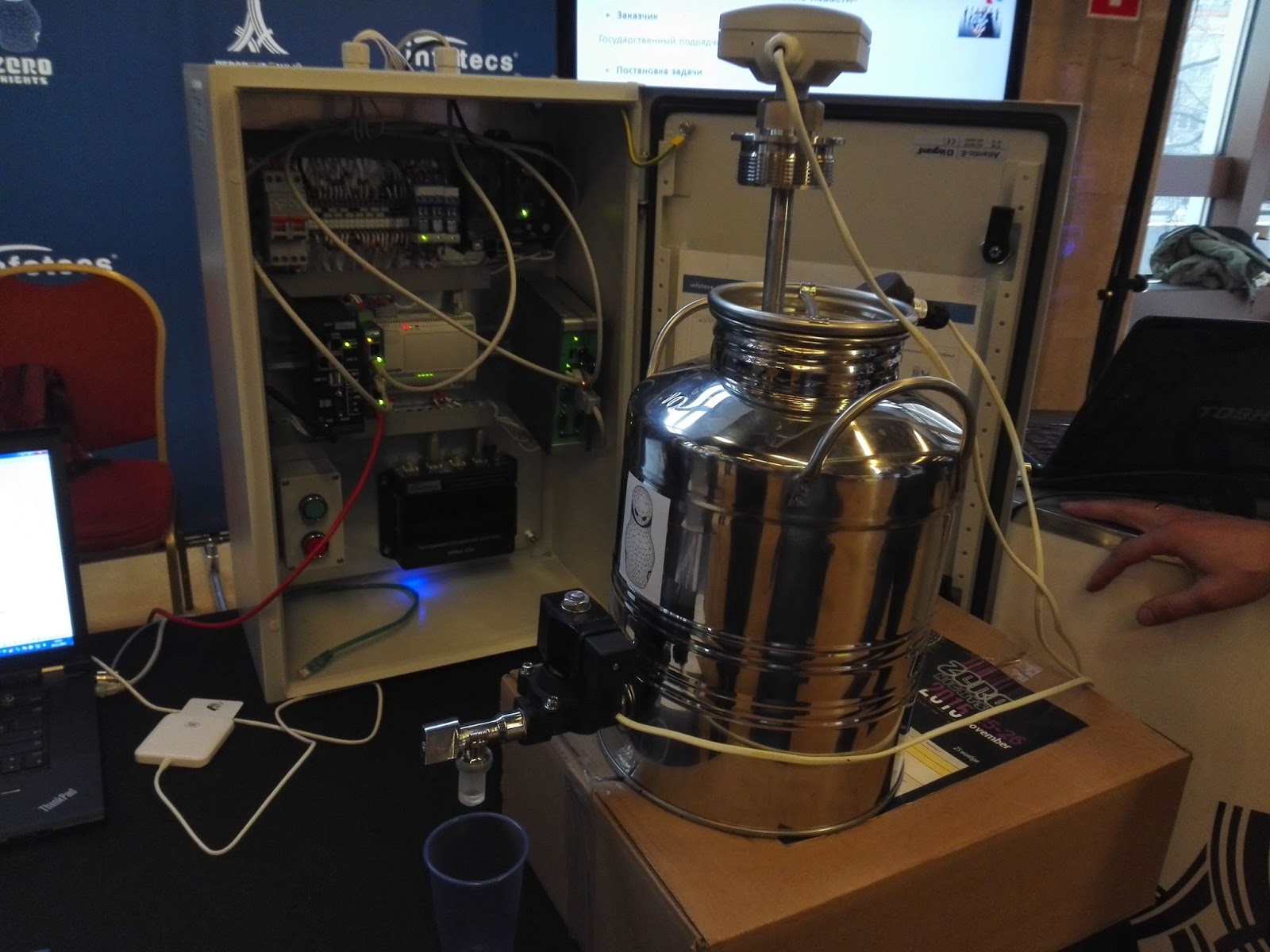 В общем зале компания ИнфоТеКС / Перспективный мониторинг показали свой макет АСУ ТП «Топливный склад», с установленными криптографическими средствами собственной разработки. Всем желающим предлагалось попробовать свои силы по взлому и управлению данной АСУ ТП. Несмотря на то, что стенд был построен на всем известном уязвимом по определению протоколе Modbus TCP и средства защиты были отключены, никто не смог до конца получить управление над системой (видимо не сильно старались). Более подробно о истории макета на ZeroNights можно прочитать в посвящённом ему посте Марины Сорокиной в группе «Кибербезопасность АСУ ТП» Facebook.