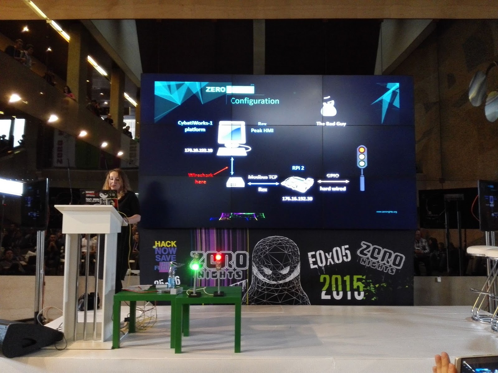 Второй выступила европейский исследователь Marina Krotofil / @Marmusha (известная своим исследованием, посвященным атаке на химический процесс производства винилацетата) с докладом « Ломай как кинозвезда: пошаговое руководство к созданию боевой нагрузки под SCADA для физических атак с катастрофическими последствиями». Марина показала, как можно привести в катастрофическое состояние светофоры. Исследование Марины было построено на программных и аппаратных компонентах платформы CybatiWorks. Обзор которой ранее делал Алексей Лукацкий. Программные компоненты CybatiWorks кстати находятся в открытом доступе: