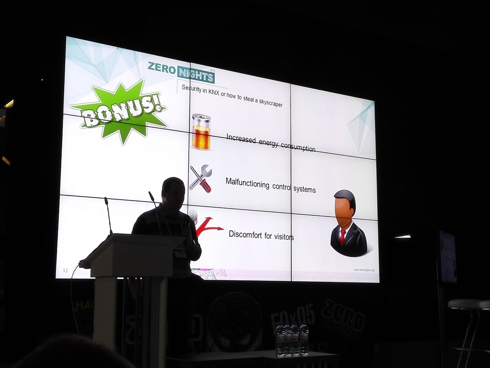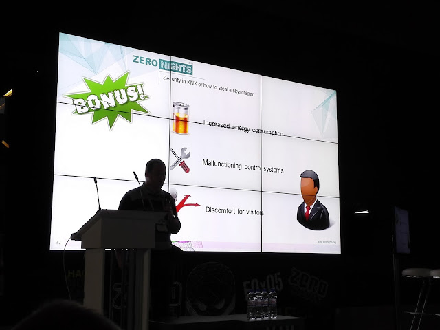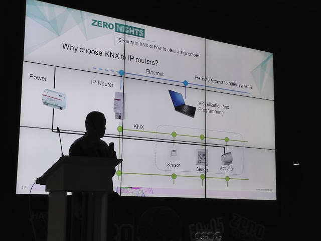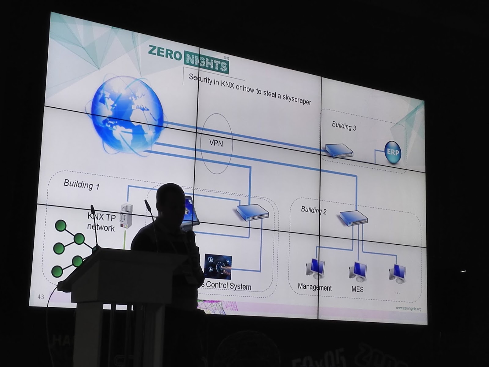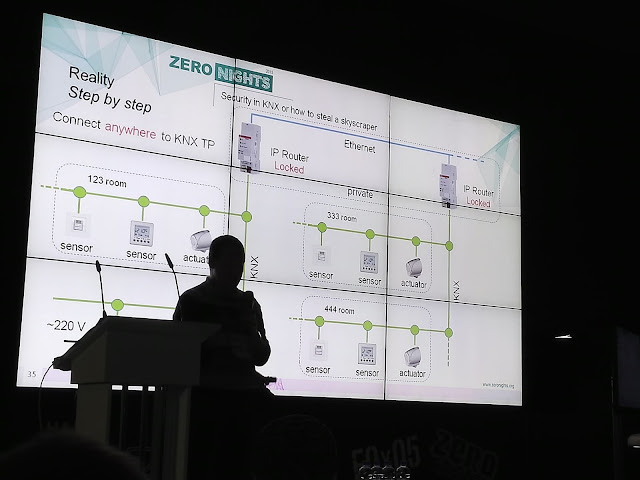 Еще одним выступлением по теме был доклад « Безопасность в KNX или как украсть небоскреб» Егора Литвинова (Digital Security). Доклад был посвящен вектору атак на «умные дома» / системы управления зданиями, направленному со стороны конечных устройств, подключенных к шине KNX на другие компоненты системы автоматизации и моделированию возможных негативных последствий для здания.