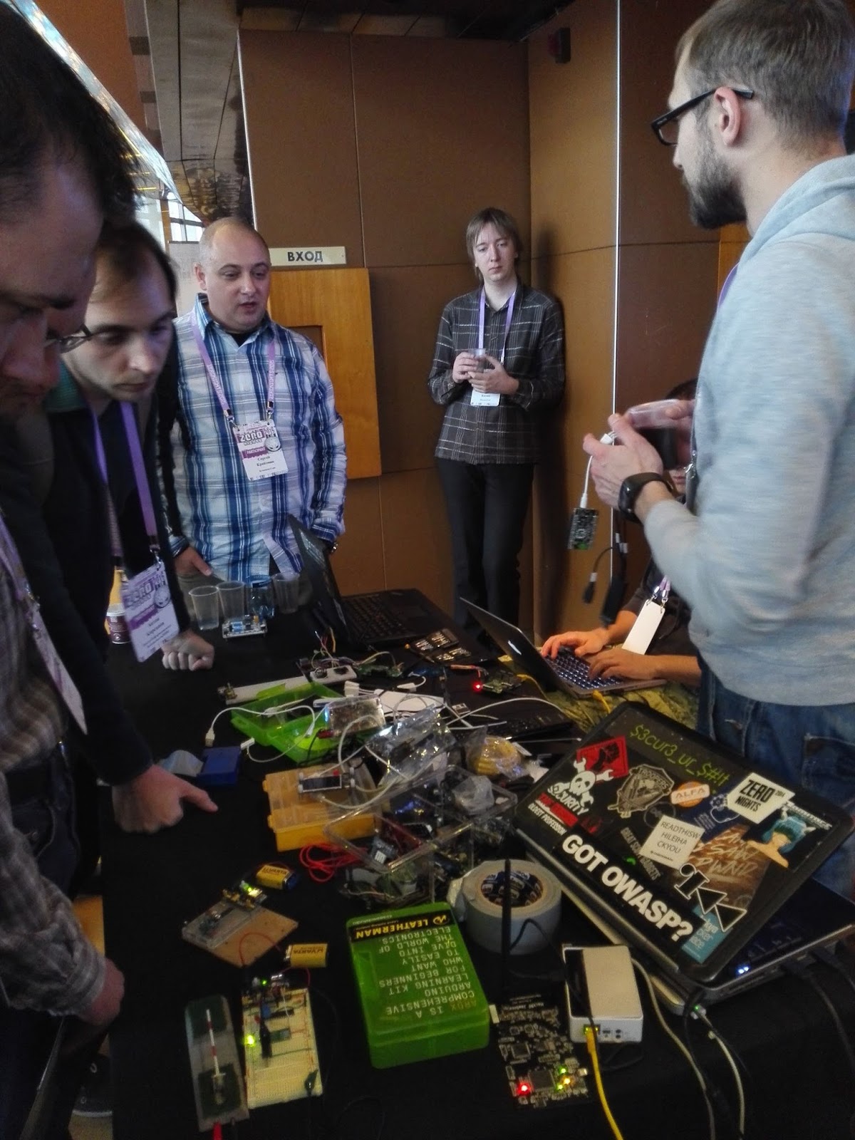 Кроме докладов, тема так же была представлена мастер-классом « Практическая эксплуатация устройств на базе МК AVR» от Александра Большева (Digital Security) и Бориса Рютина, который занял практически весь второй день конференции. В рамках него исследователи показали опыт по реверс-инжинирингу и эксплуатации переполнений буфера в прошивках микроконтроллеров AVR (на базе которых построено в том числе оборудование IoT, автомобильных подсистем и промышленных контроллеров).