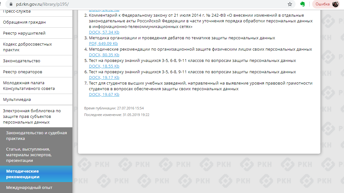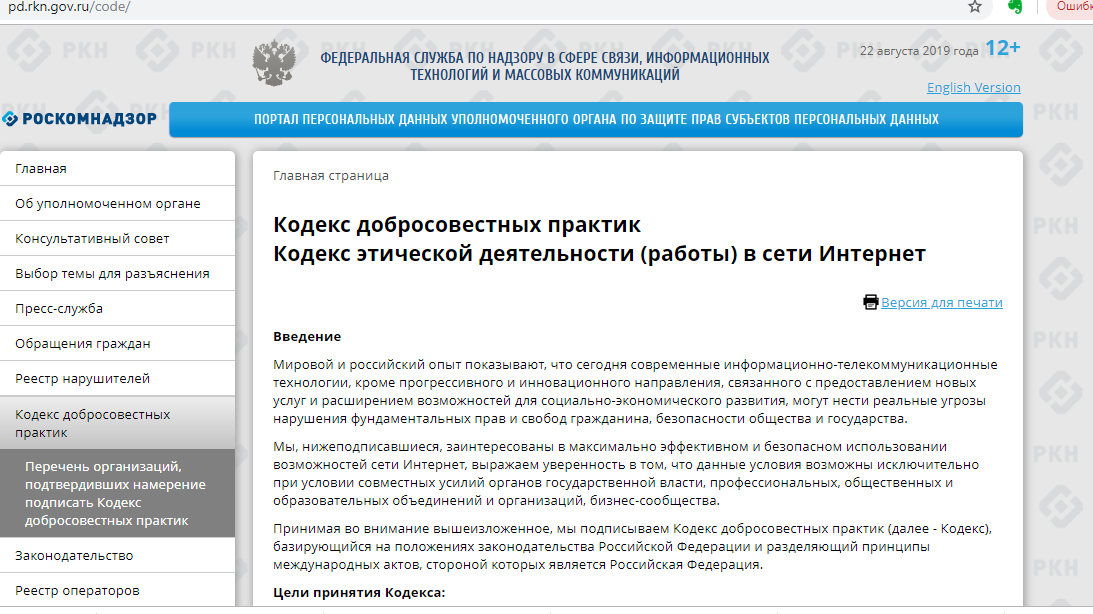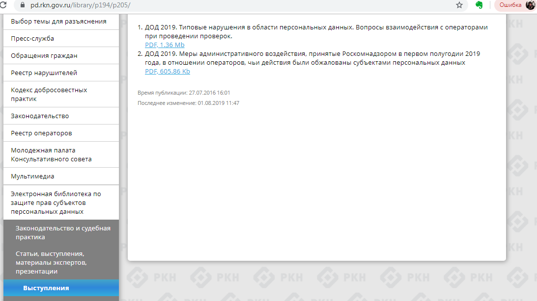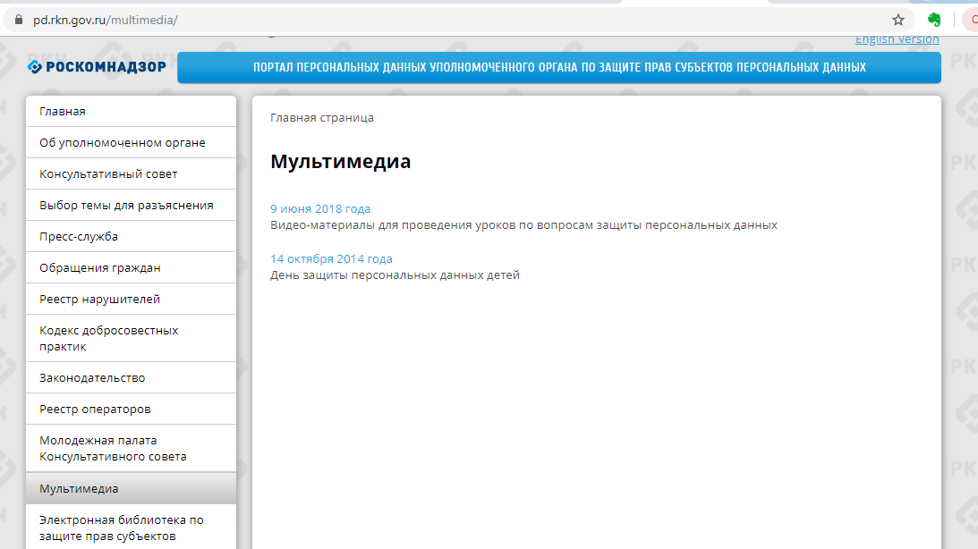 1. Заходим на сайт rkn.gov.ru, далее - Персональные данные.