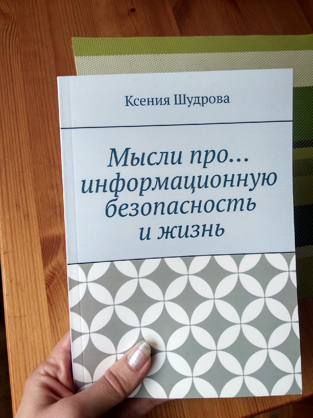 Из четырех моих книг выбрана была "Мысли про... информационную безопасность и жизнь". Во-первых, потому что почти художественная и легко читаемая. Во-вторых, потому что бесплатная и лежит в открытом доступе, то есть от публикации я ничего не потеряю.