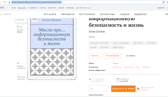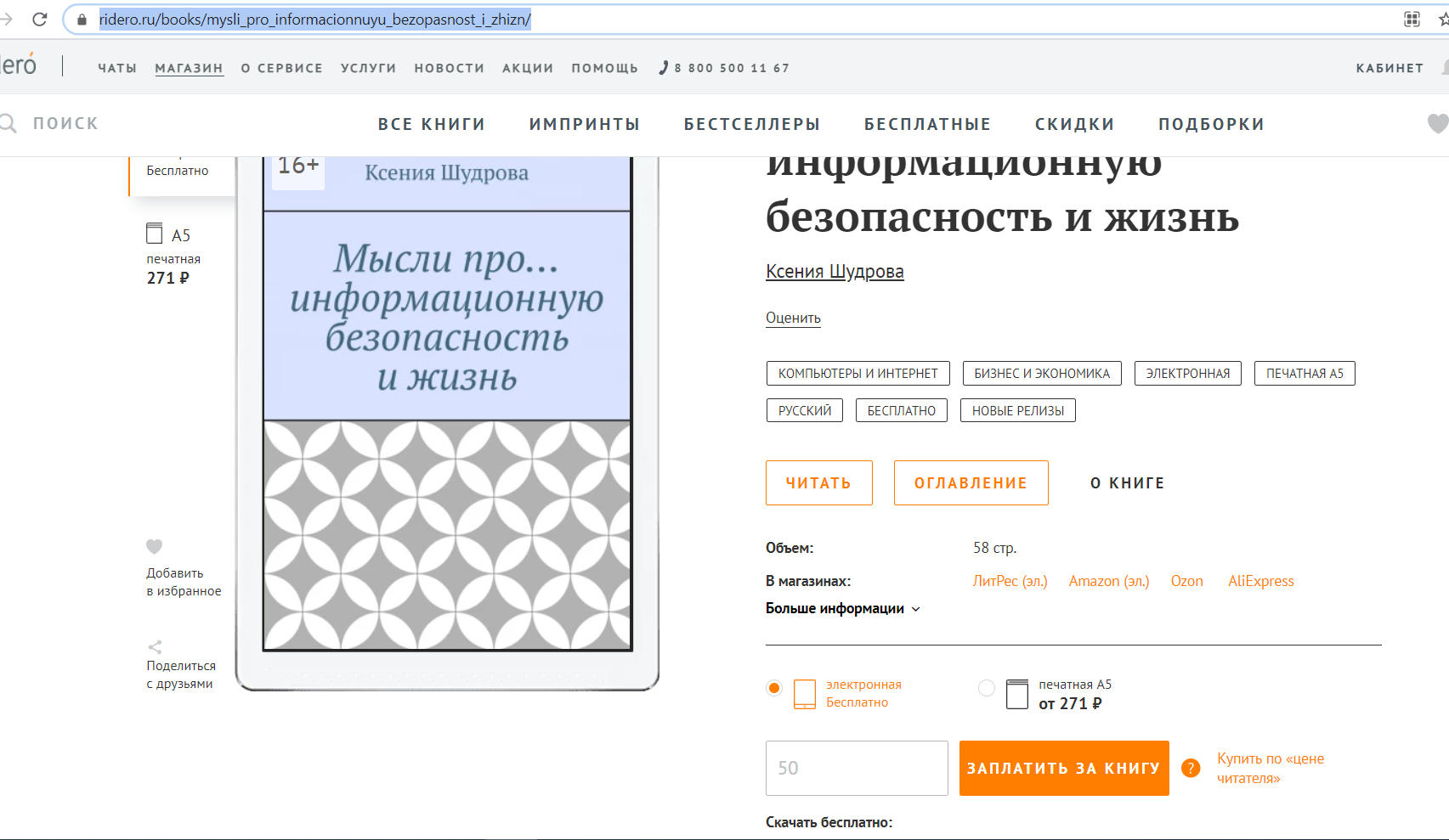 - Появилась страница книги, где ее можно заказать как в электронном (ЛитРес, Amazon), так и в бумажном формате (Ozon, AliExpress). Оба форматы доступны и на сайте Ridero (доставка платная).