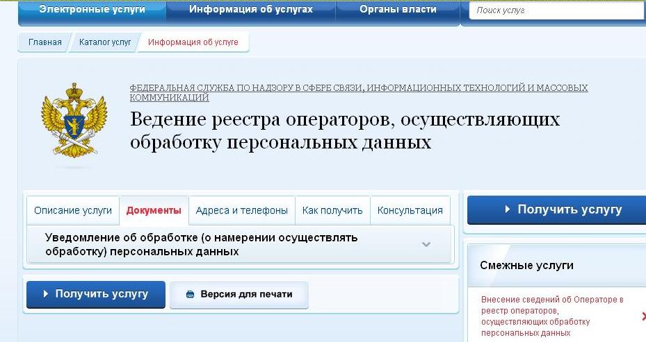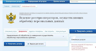 Сегодня на портале госуслуг обнаружила возможность подачи уведомления об обработке персональных данных. Рассмотрим функционал этого раздела.