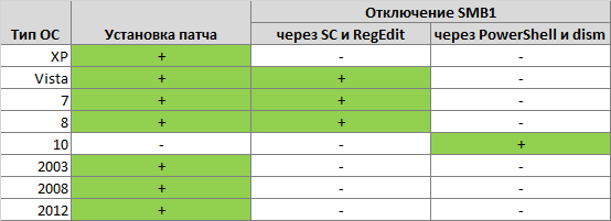 - В зависимости от версии ОС отключить (или не отключать) SMB 1 тем или иным образом.