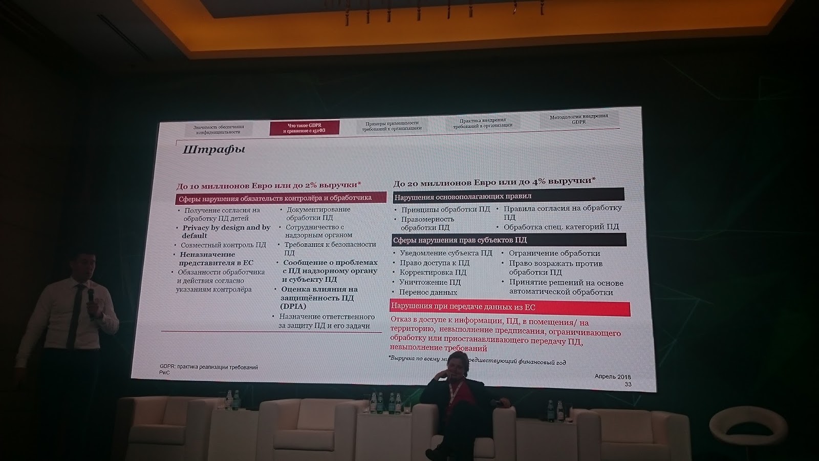 На данном мероприятии интересовали 2 секции: КИИ и GDPR.