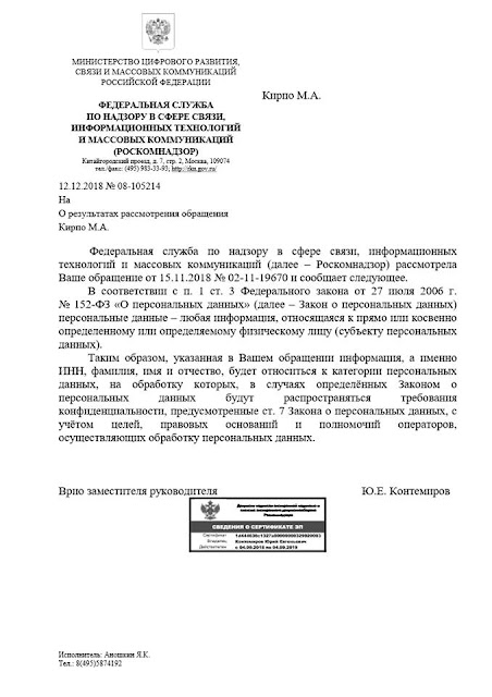 Подобные ответы от РКН разместил в Фейсбук Максим Кирпо, замечу что тексты ответов разные и"не под копирку", но смысл один и тот же.