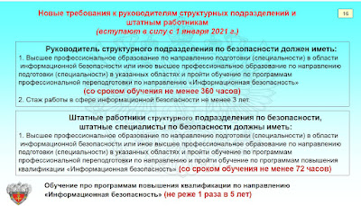 После общественного обсуждения ««12.1. Руководитель структурного подразделения по безопасности должен иметь высшее профессиональное образование по направлению подготовки (специальности) в области информационной безопасности или иное высшее профессиональное образование и пройти обучение по программам профессиональной переподготовки по направлению «Информационная безопасность» (со сроком обучения не менее 360 часов).