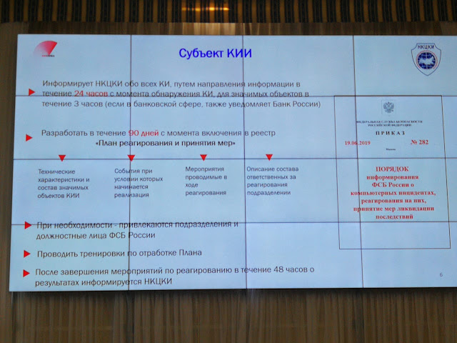 2. НКЦКИ. Доклад НКЦКИ (Раевский) традиционно был более формальным. Отдельно отмечено, что банковский субъект КИИ работает напрямую с НКЦКИ, а не через банк России.