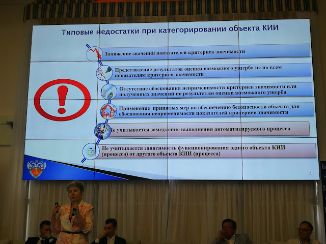 В результате имеем "Возврат порядка 25-30% заявленных результатов категорирования", по основной причине "Причины - занижение категориии значимости и не знают вообще свой объект, не проводят прежде инвентаризацию". И вполне логичный вывод, что "Если только безопасники занимаются категорированием, то правильного результата по категорированию не добиться". Особенно с учетом того, что в проекте ПП127 в 2017 году безопасник вообще в состав комиссии не входил.