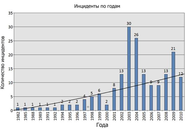 Характер нанесенного ущерба | Количество случаев в мире (на конец 2011 года) |