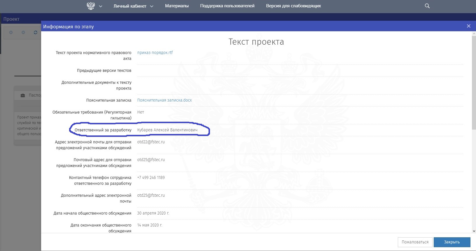 Разработчик проекта НПА от ФСТЭК России - Кубарев Алексей Валентинович