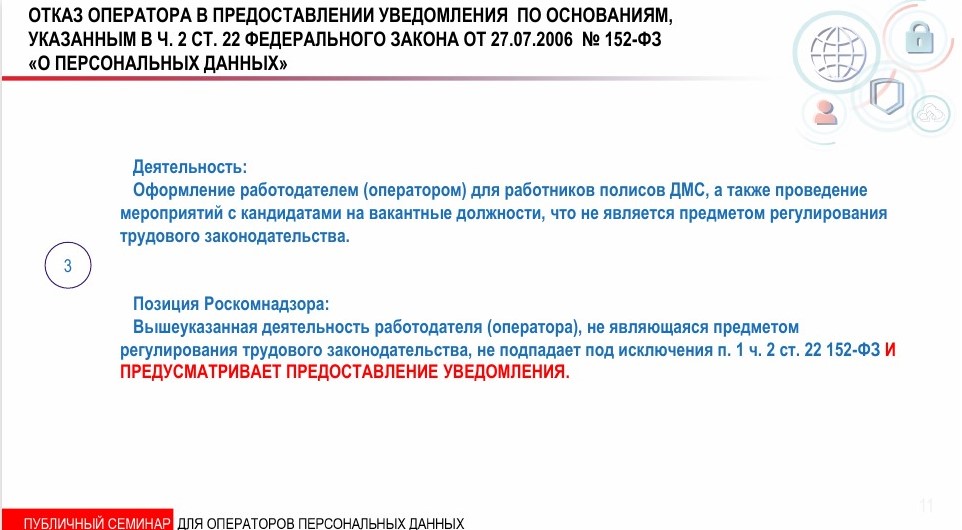 9. Идет 14 год выполнения 152-ФЗ, а РКН продолжает удивляться одним и тем же вопросам от операторов ПДн. Какой уже год нам обещают матрицу ПДн? Ну вот и еще раз пообещали. На семинаре 2021 года будут опять вопросы традиционные.