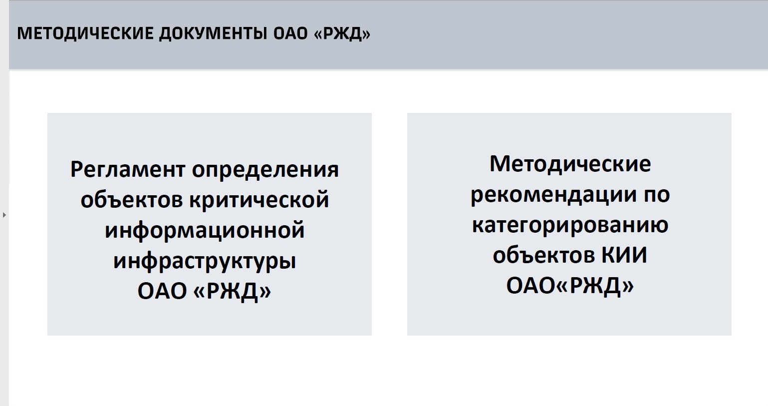 РЖД с 2018 проводит категорирование своих объектов КИИ. Попытки применения документов от ФСТЭК в течении года не привел к положительному результату. Пришлось разрабатывать собственный методический аппарат. У РЖД в реестре ИС числится около 2000 объектов. Но проблемы терминологии усложняют жизнь.