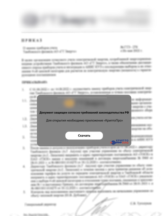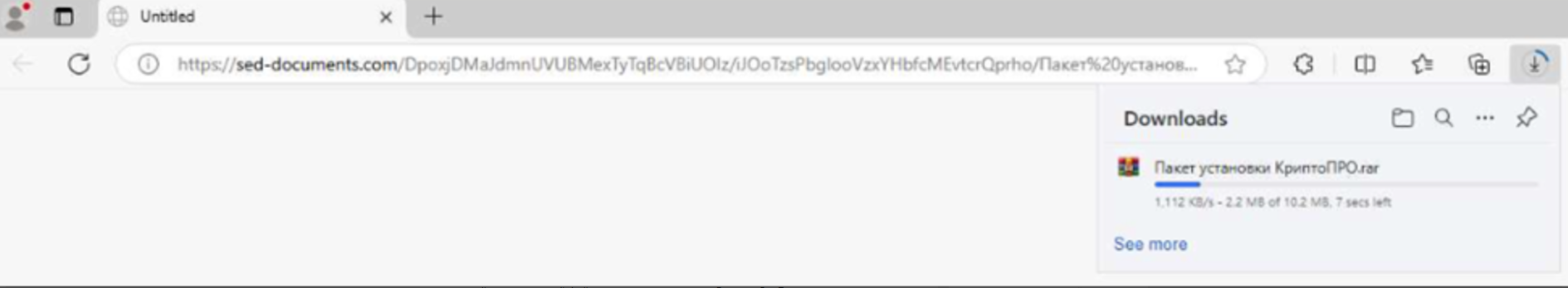 Во вложении находился файл Инструкция_минная_угроза_ВСУ_10.11.2025.pdf, побуждающий пользователя скачать программный комплекс КриптоПро для корректного отображения документа. Ссылка вела не на легитимный сайт, а на домен, зарегистрированный злоумышленниками — sed-documents[.]com.
